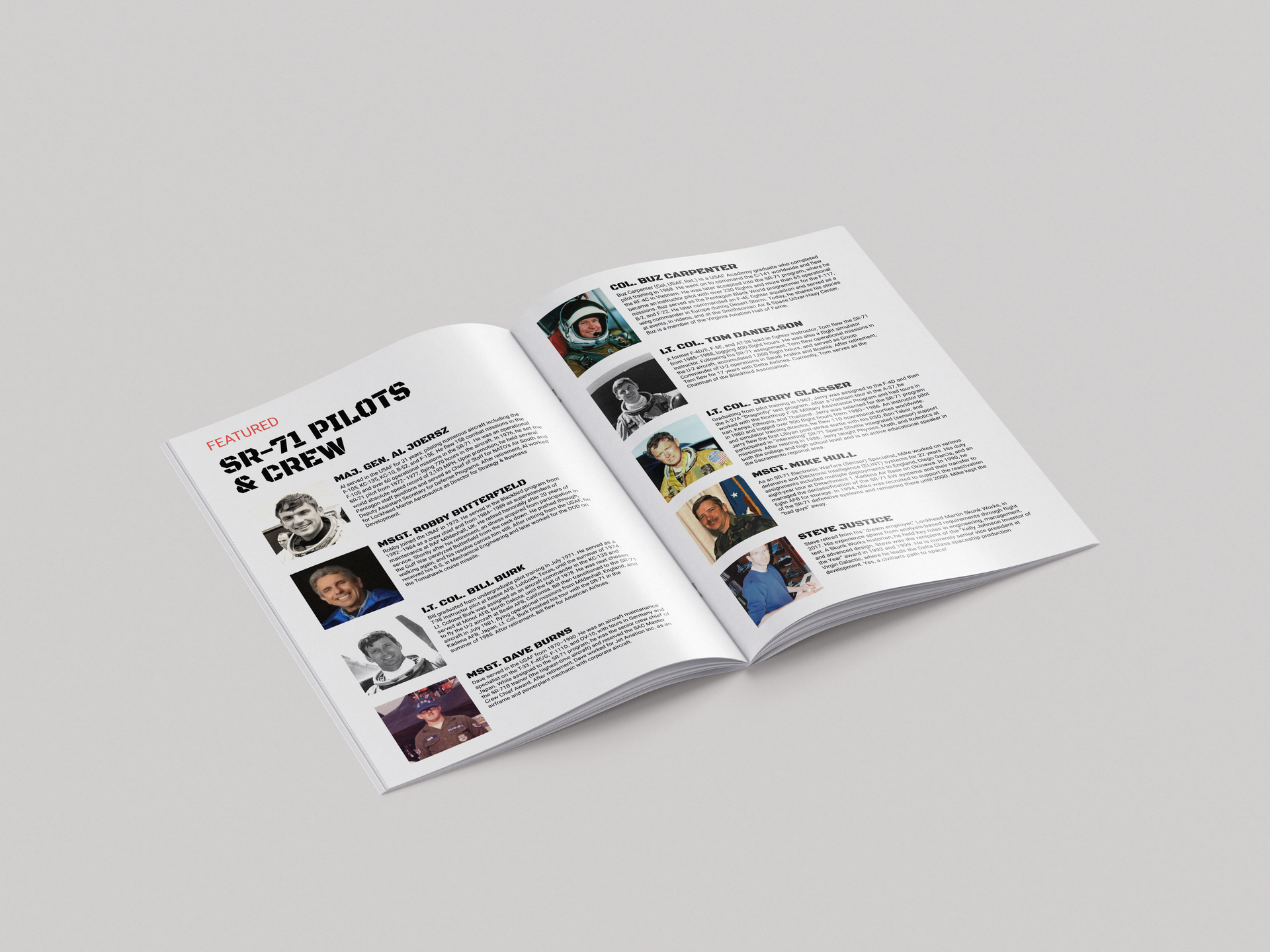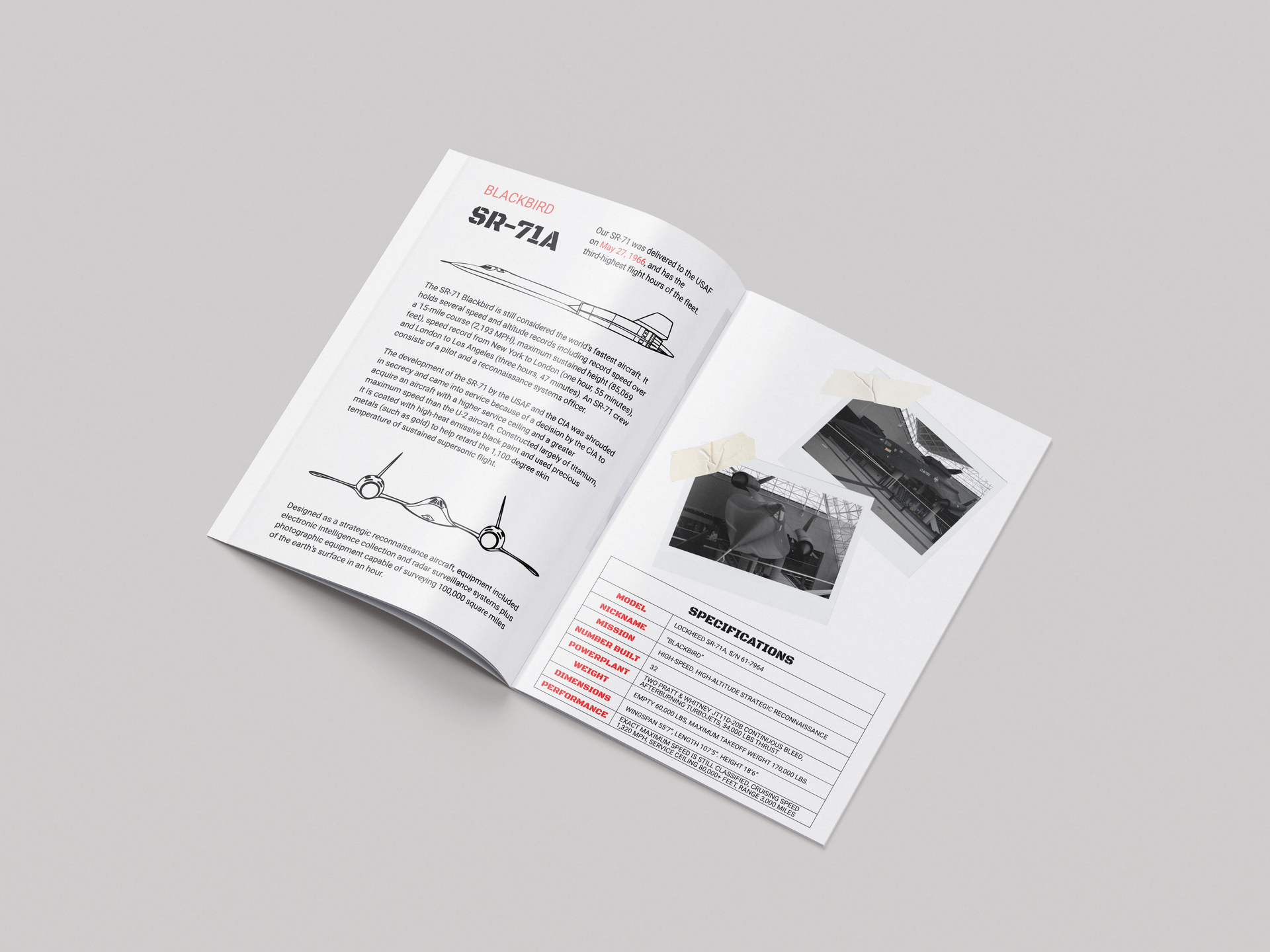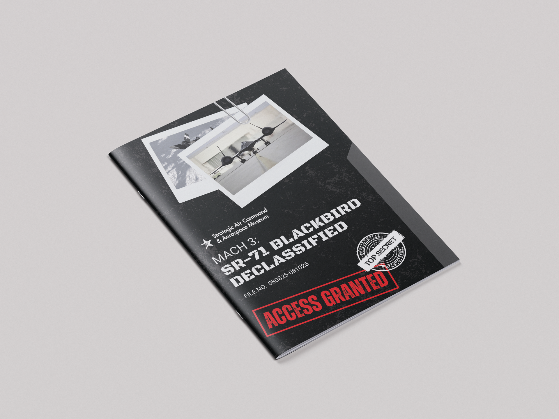 Beyond the collaboration piece, we developed a fully designed event program built around a classified case file theme. Rather than a traditional pamphlet, the program was styled to feel like a declassified military document, reinforcing the mystery and historical significance surrounding the SR-71 Blackbird.